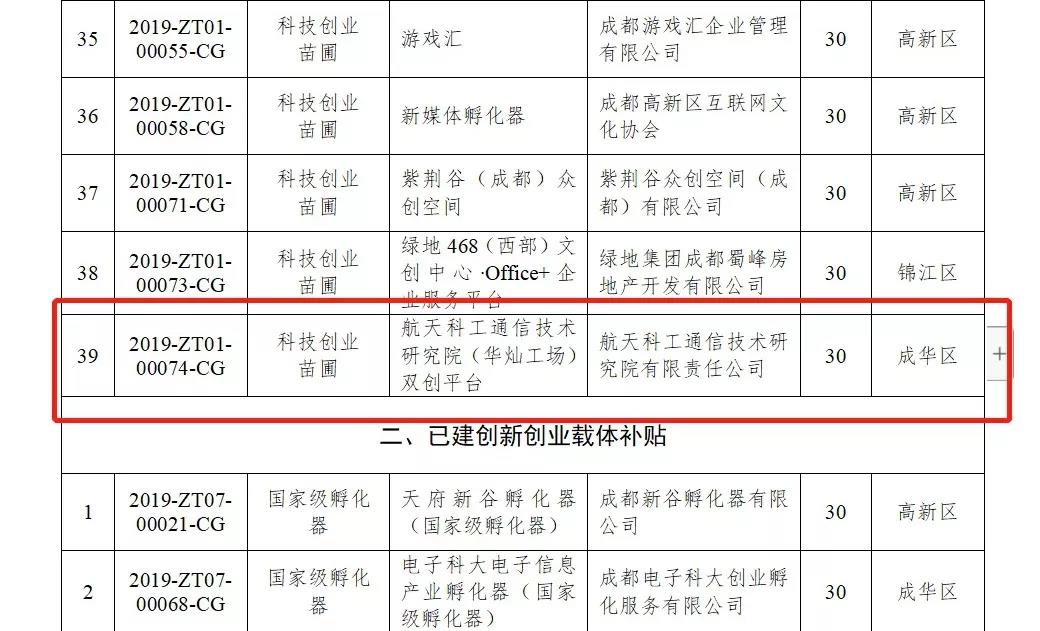 喜報!通信研究院雙創平臺被評為2019成都市科技創業苗圃