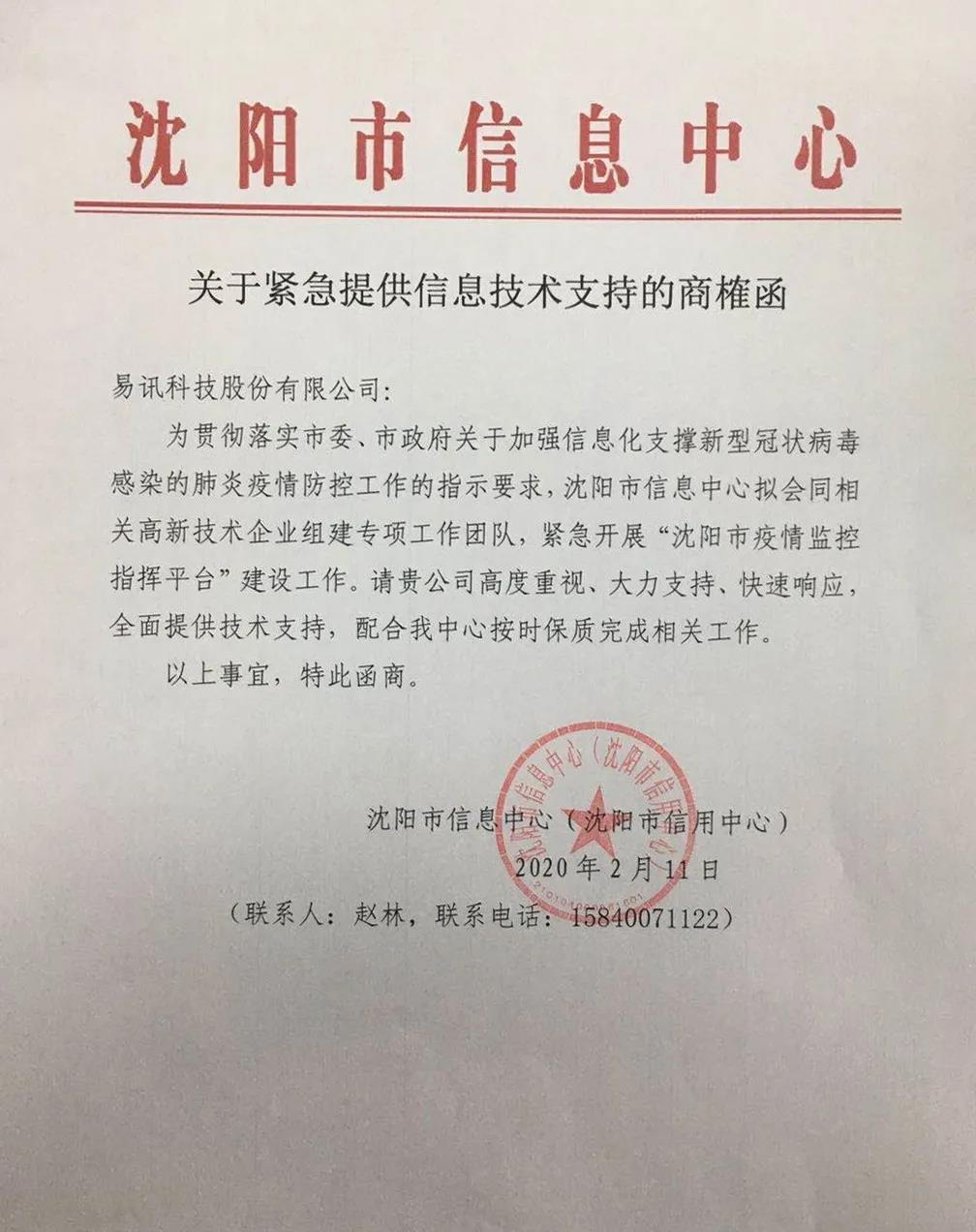 在疫情爆發(fā)初期,易訊科技黨委第一時間提出要堅決做到“隨叫隨到、隨說隨辦、決不講價錢”,并主動聯(lián)系相關(guān)的服務(wù)單位,提出服務(wù)保障方案,助力所有合作單位防控新型冠狀病毒肺炎疫情期間的信息化保障工作,截至目前,易訊科技先后參與了國家電網(wǎng)及遼寧電力、遼寧省凌源各監(jiān)獄、沈陽市民政局、沈陽市信息中心、沈河區(qū)政府等多家單位疫情期間的技術(shù)支持和維護保障工作。