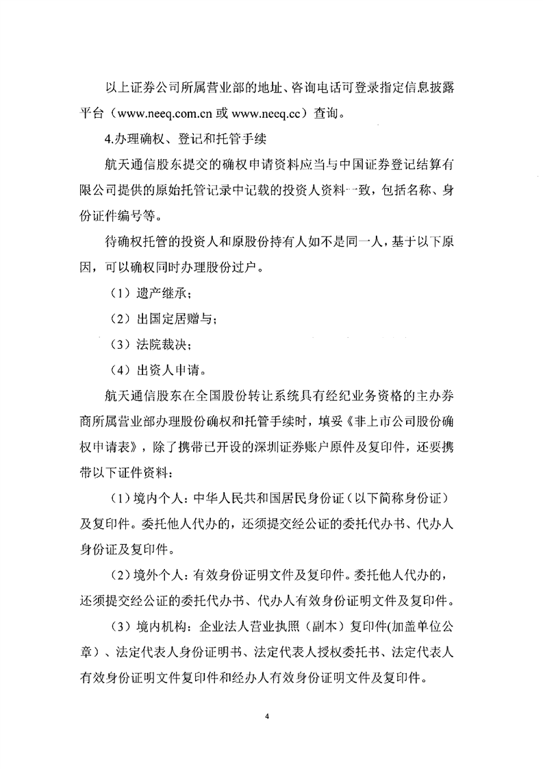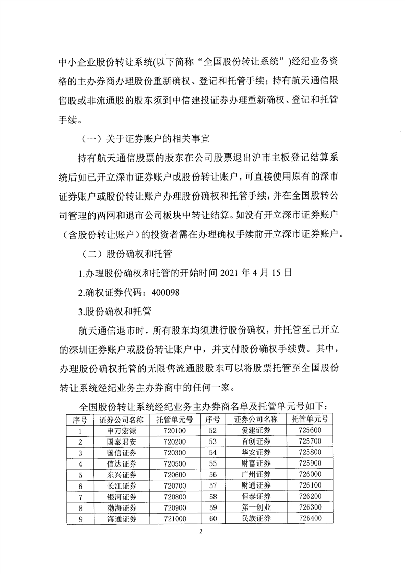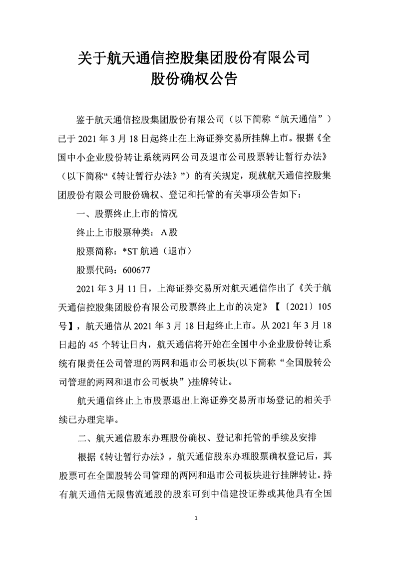 關(guān)于航天通信控股集團(tuán)股份有限公司股份確權(quán)公告